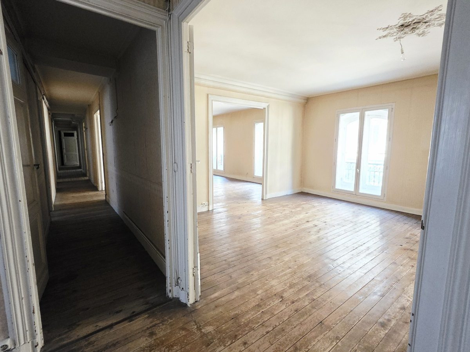 Rare, au centre de Bordeaux, grand appartement de 222 m² dans un immeuble bourgeois, avec ascenseur, comprenant un grand couloir central distribuant de nombreuses pièces dont 8 pièces principales, grande cuisine, dégagements, salle d'eau, salle de bain, toilettes, grande loggia couverte... Cet appartement est complété par une grande cave et un cellier aux combles de l'immeuble. Prévoir travaux, nombreuses possibilités d'aménagement sur une base saine et isolée. bureaux possibles. Certaines photos représentent un aménagement virtuel.